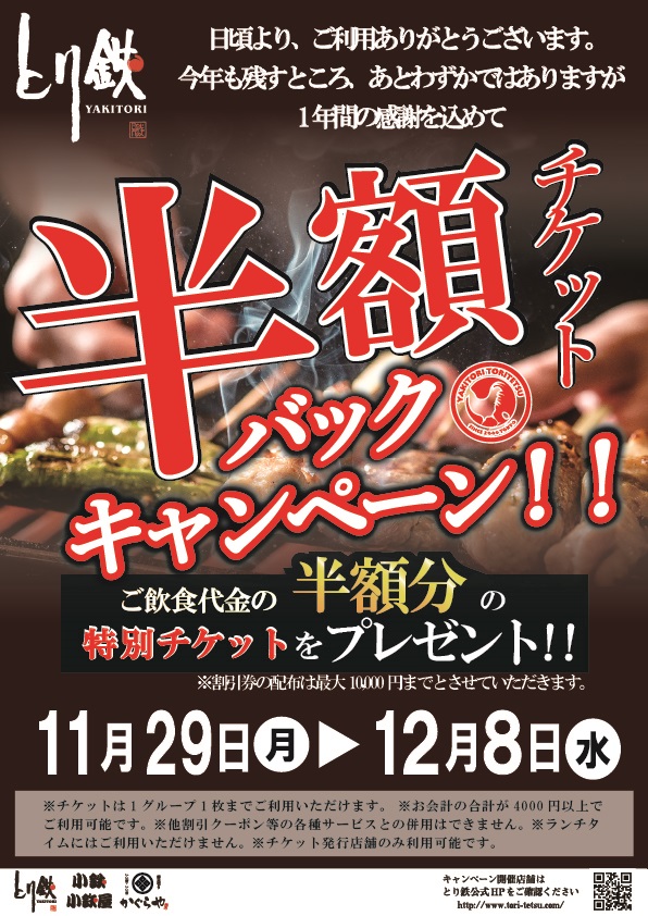 『半額チケットバックキャンペーン』を開催いたします!!!