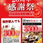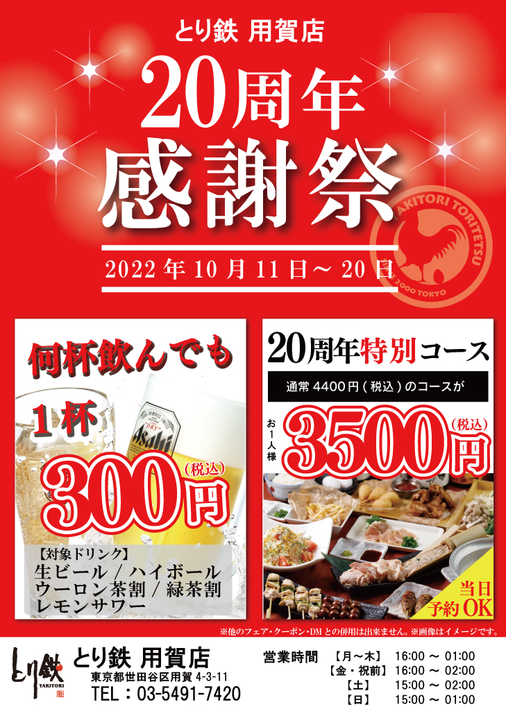 とり鉄用賀店20周年感謝祭のお知らせ
