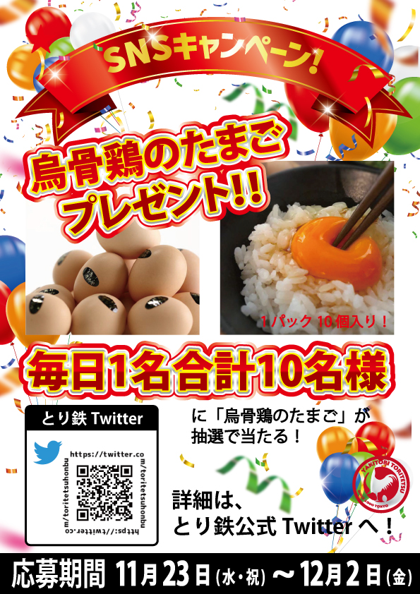 合計10日間で10名様に【烏骨鶏のたまご】が当たる!!!