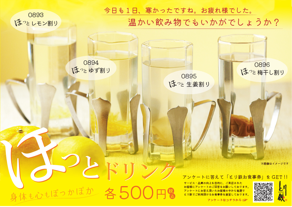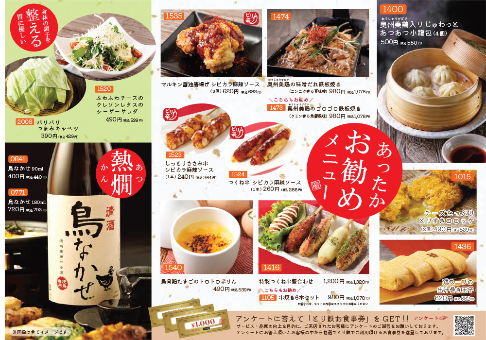 定番の熱燗や体の温まるメニューご用意してお待ちしております