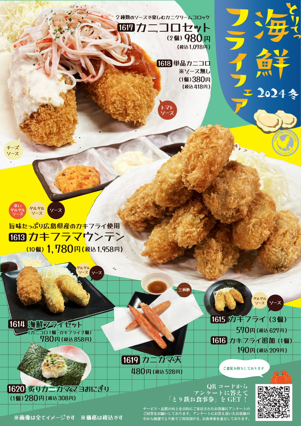 今年の冬は、海鮮フライのメニューをご用意しました。