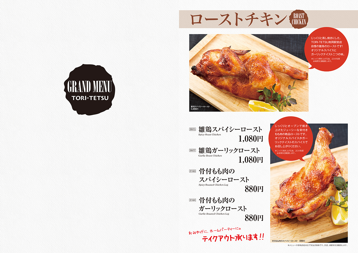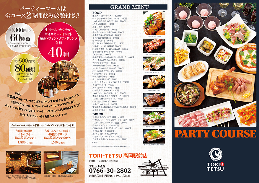 TORITETSU高岡駅前店のグランドメニュー・宴会メニューが新しくなりました!