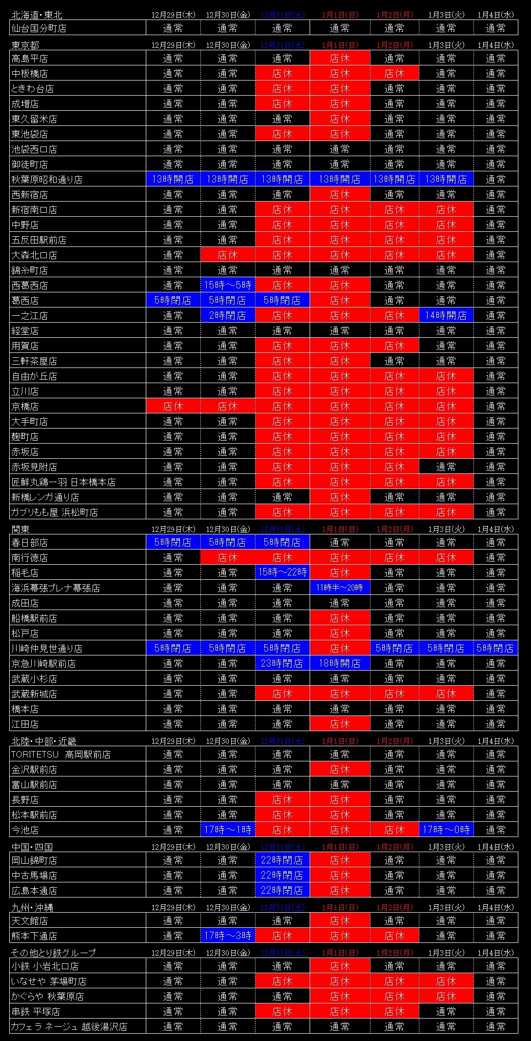 年末年始の営業時間のお知らせです。