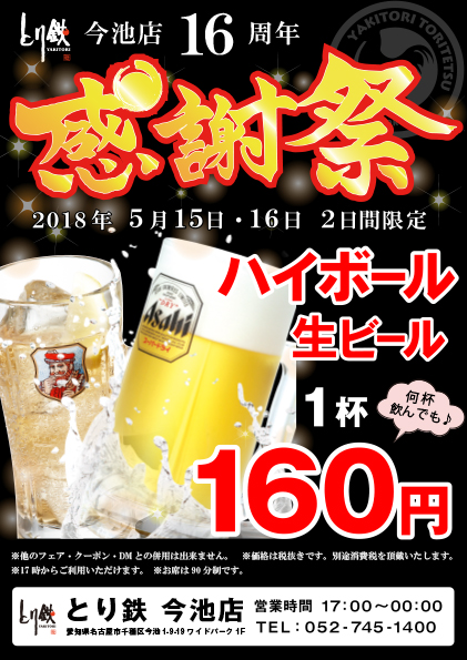 とり鉄 今池店 16年分の感謝を込めて!