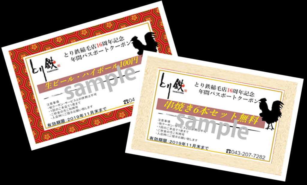 一年間毎回来店毎に『串焼き6本セット』がタダ!