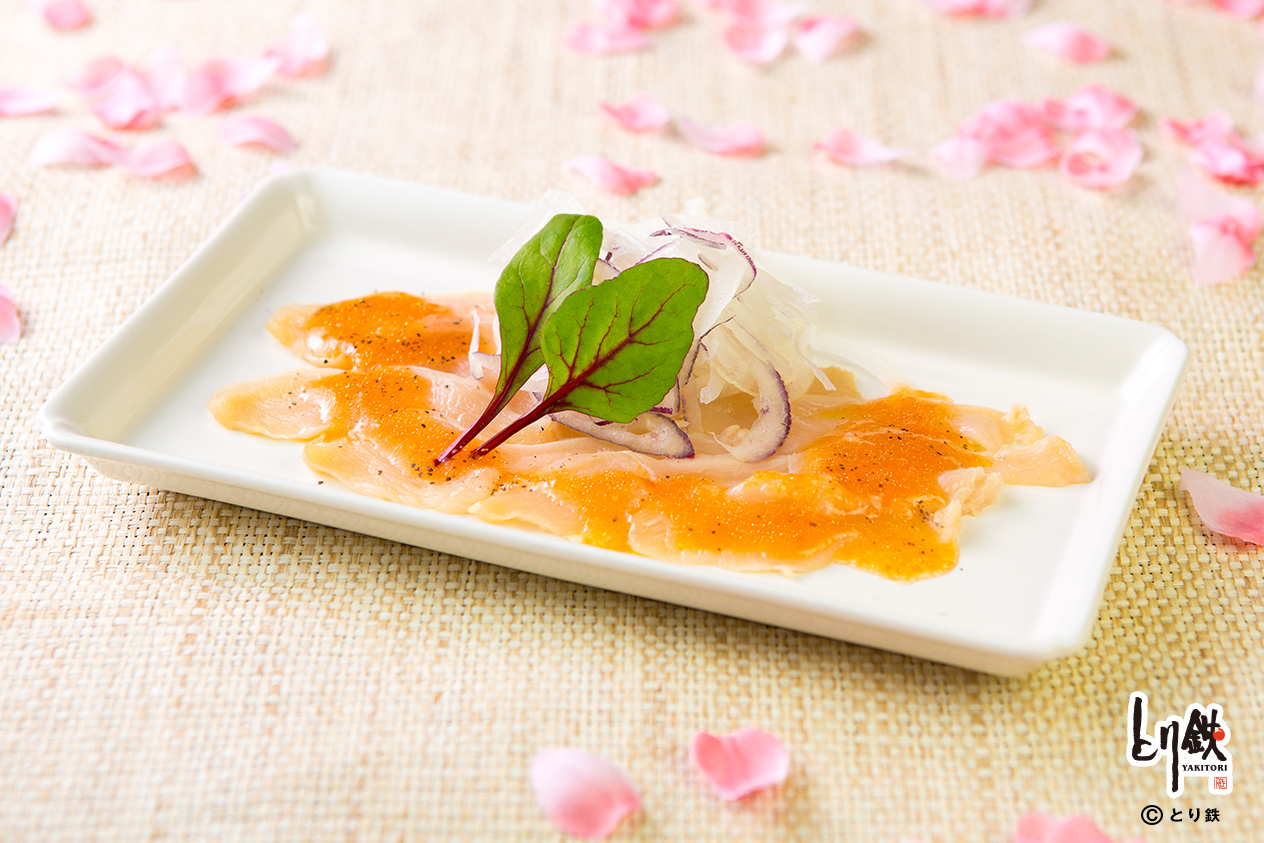 総州 紅楽美 生ハム カルパッチョ 人参ドレッシング  ¥590(税別)