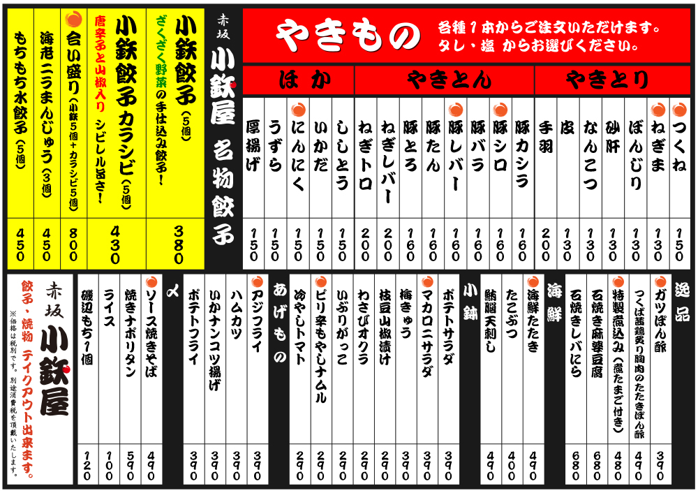 焼き鳥 餃子 居酒屋 赤坂 小鉄屋がOPEN致しました!!