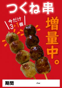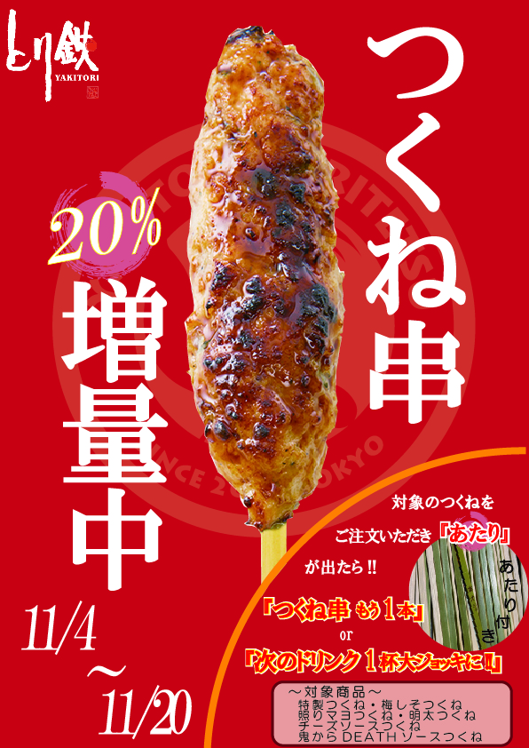『つくね串 20% 増量↑↑ キャンペーン』 開催中です!!