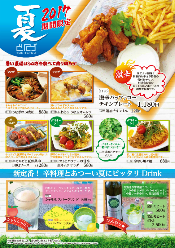 とり鉄 2017年下期 新グランドメニュー先行販売のお知らせ |