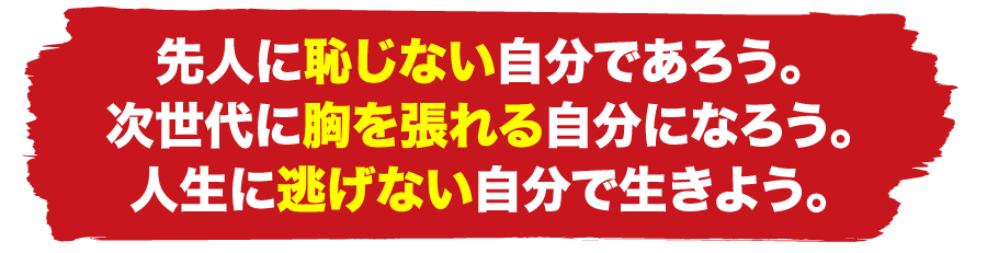 先人に恥じない自分であろう。次世代に胸を張れる自分になろう。人生に逃げない自分で生きよう。