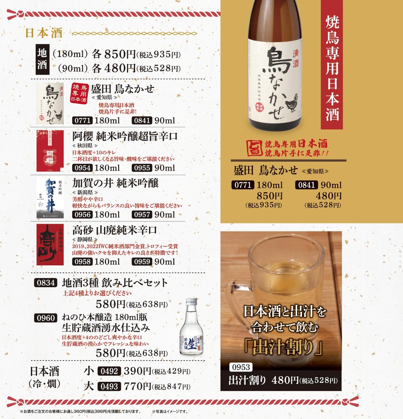 JR岡山駅 近くの居酒屋で美味しい 焼き鳥 なら とり鉄岡山駅前西口店がおすすめ。駅西口から徒歩1分。鶏料理専門居酒屋として秘伝の技で丁寧に焼き上げる 焼き鳥 と、素材にこだわる鶏料理が自慢。「本当に美味しいものを」「できる限りの低価格で」をコンセプトに日々努力しております。 動物由来のタンパク質を含まないビタミンEを強化した飼料で丹精込めて育てた「楽美鶏(らくみどり)」の 焼き鳥 をはじめ、様々な調理法で提供される希少な「純種の鳥骨鶏(うこっけい)」、全飼育期間無薬飼料で飼育したきめ細かく歯ごたえのある肉質のオリジナル鶏「奥州美鶏(おうしゅうびどり)」を中心とした鶏料理と豊富な種類のお酒との美味しいコラボをお楽しみください。ジャズが流れる居心地良い空間は、気の合う仲間同士ワイワイ盛り上がれることはもちろん、ご家族、お一人様、カップルや少人数のグループなど様々なシチュエーションでのご利用が可能。 飲み放題付きの忘年会、新年会、歓送迎会、女子会等、各種宴会にもおすすめです。