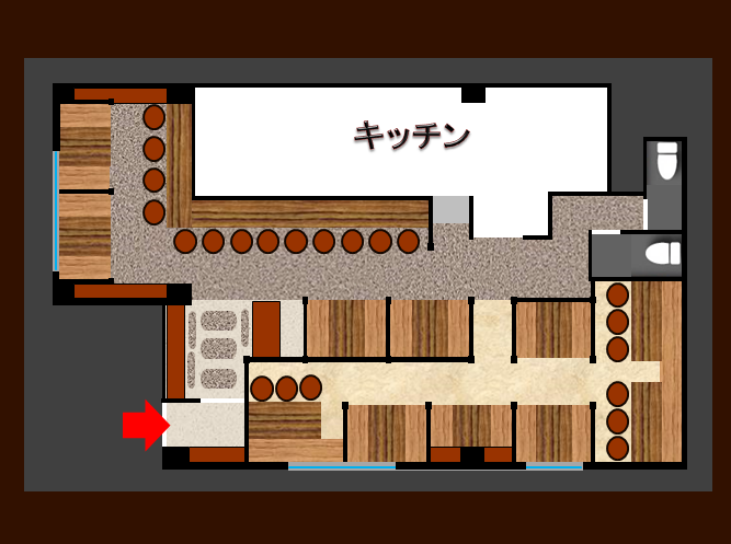 | 半個室 | 有 2名席×1 , 4名席×7 , 6名席×1 , 12名席×1 |