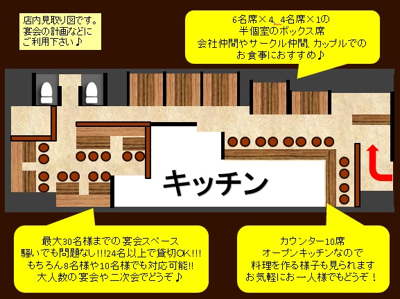 | 座席数 | 66席(最大宴会人数28名) |