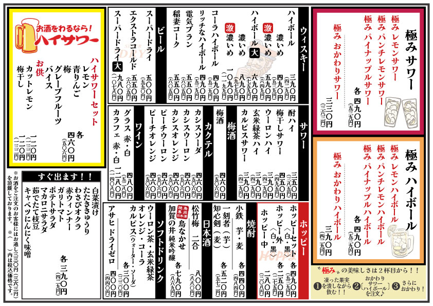 | 営業時間 | 【月~金】17:00~23:45 【日】 17:00~23:30 |