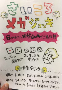 サイコロを振って6が出れば、メガジョッキに昇格する、楽しいイベント♪