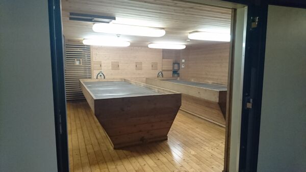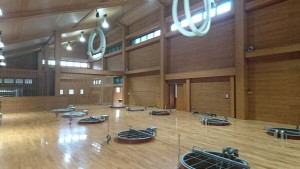 製造中の場内は湿度が多いため木壁だと湿気を吸ってくれるからとのこと。
