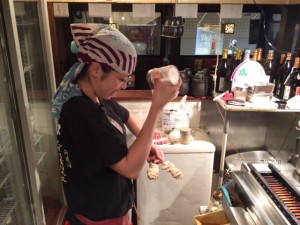 『ひねり塩』と言う技法をご存知ですか?利き手の人差し指、中指、親指で塩を掴んで『ひねる』んです。