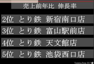 この賞は、とり鉄フェスタ対象期間の8月~9月に売上トレンド対比ランキングで