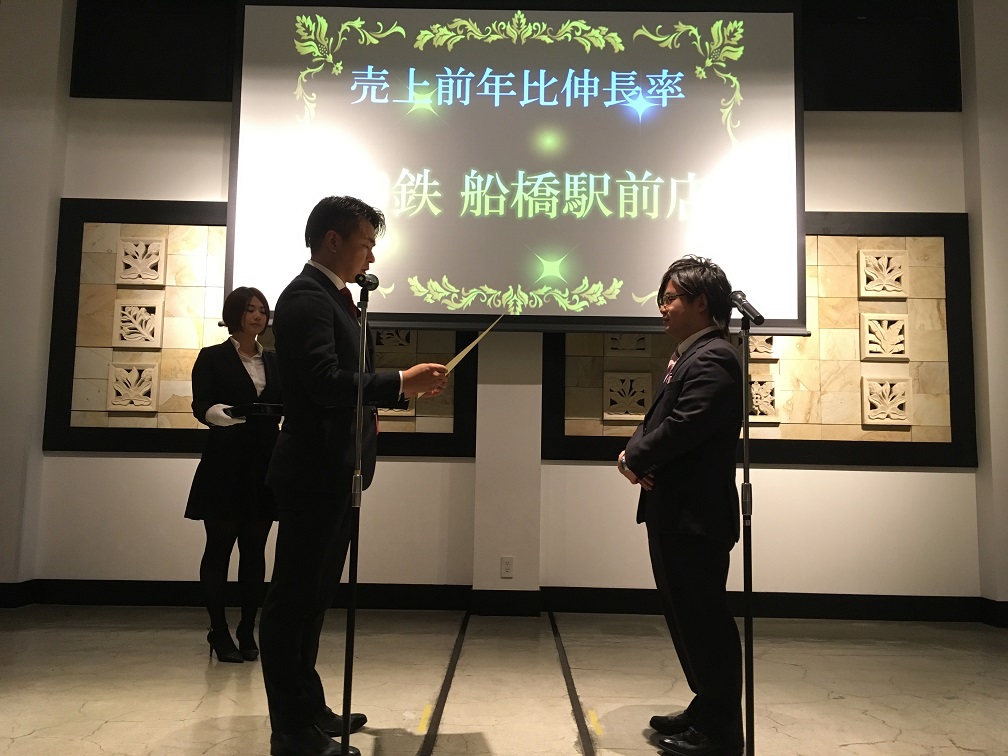 昨年同時期と比較した点数の高い店舗を表彰するものです。