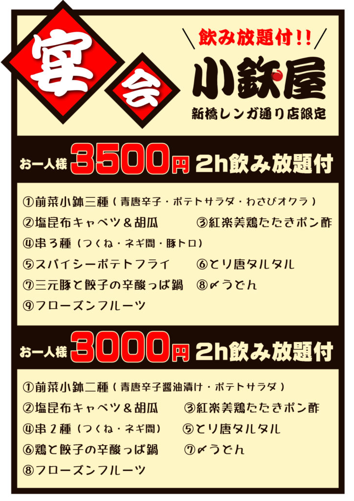 2店舗の宴会メニューを